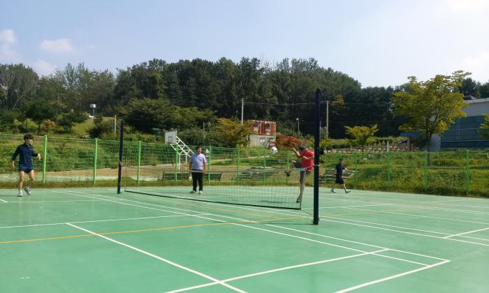 성진가족들은 모여서 족구경기를 했다..