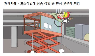 - 고소작업대 상승 시 근로자 끼임 방지용 과상승방지 장치는 끼임.부딪힘 등 재해를 예방하기 위해