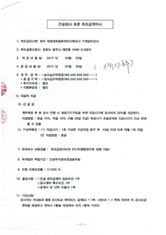"축" 원주 대원냉장 물류센터 신축공사 계약체결!