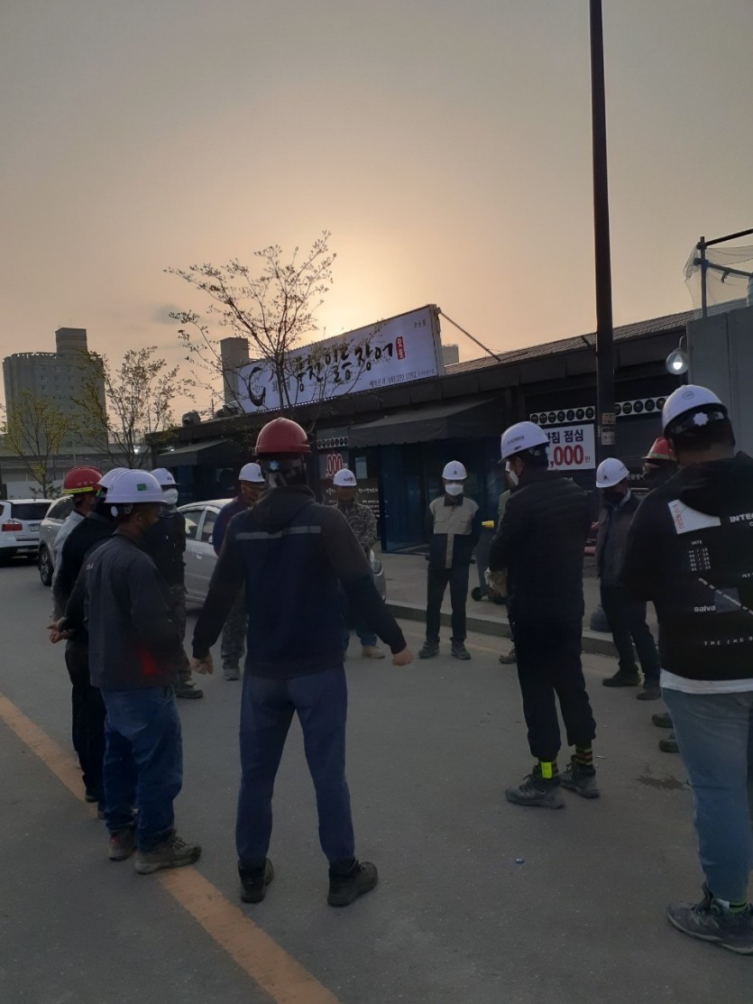매일 아침 현장 투입전 근로자 안전관리 교육 및 체조