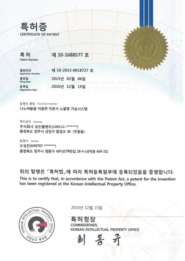 특허증_2 페이지 정보 작성자 댓글 0건 조회 1,155회 작성일 18-09-07 11:29 본문 나노버블을 이용한 직분사 노즐형 가습시스템 특허증 목록 이전글특허증_3 18.09.07 다음글특허증_1 18.09.07 댓글목록 댓글목록 등록된 댓글이 없습니다.