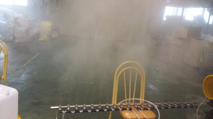 AIR COMPRESSOR의 공기압을 이용하여 마이크로버블 상태의 물로 공조기안으로 넣기전에 외부에서 이류체 노즐 테스트 중입니다.