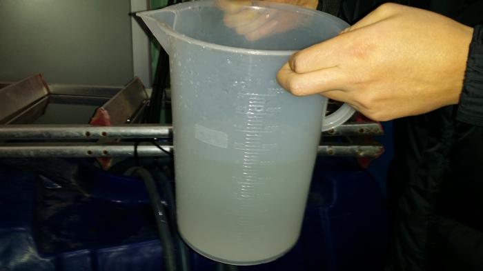 마이크로 버블 발생기에서의 버블 발생 상태의 사진입니다.